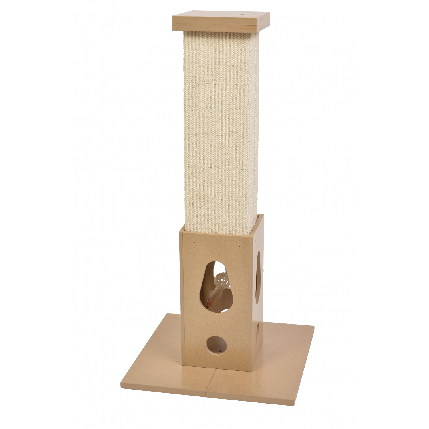 The CA&T Ultimate Scratch & Play Post is just ‘purrfect’ for your cat to stretch up and scratch thus sharpening & maintaining their claws on the fibrous woven high quality Sisal plus toning their muscles at the same time. It can also be helpful in reducing stress and boredom. This fabulous, heavy and sturdy cat scratching post is made from varnished MDF in two parts for extra durability on the base and is easily assembled. Place anywhere in your house and your cat will soon be taking advantage of the great height to survey their surroundings. Additional toy chamber at the base makes for fun & games as well. You could perhaps add some more toys and/or some Catnip for extra fun! Dimensions: 16″L x 16″W x 32.5″H.