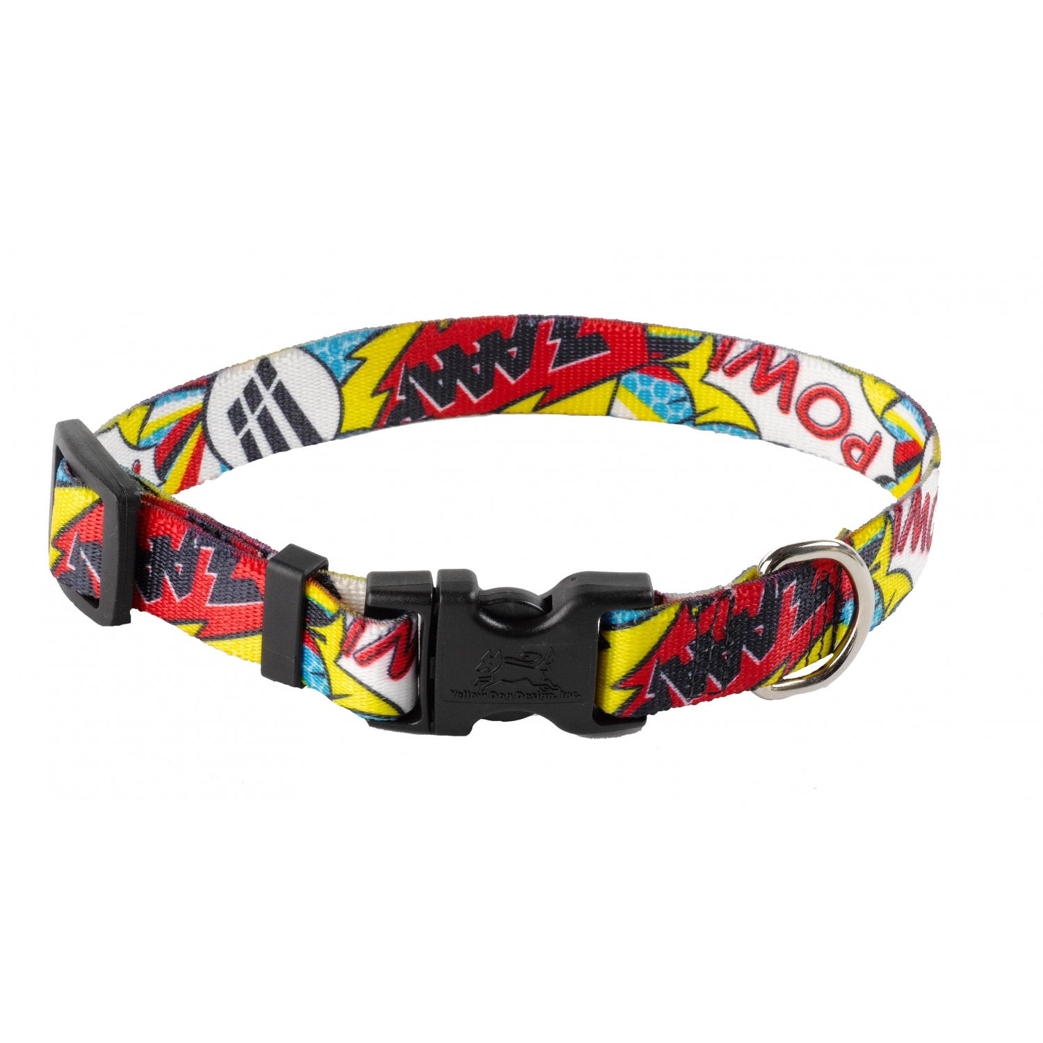 The Comic Print collar from Yellow Dog Design is hot right now! ZAP! POW! Made from 100% polyester and fully adjustable, this collar features a durable plastic fast release clip and a silver-look metal D-ring, making it easy to coordinate with the matching Comic Print Lead or Comic Print Step In Harness in our range or to completely mix it up with a different colour or pattern; take a look at others in our range! Practical and stylish, this collar is also washable, so you can keep the bright colours looking fresh and clean for longer.