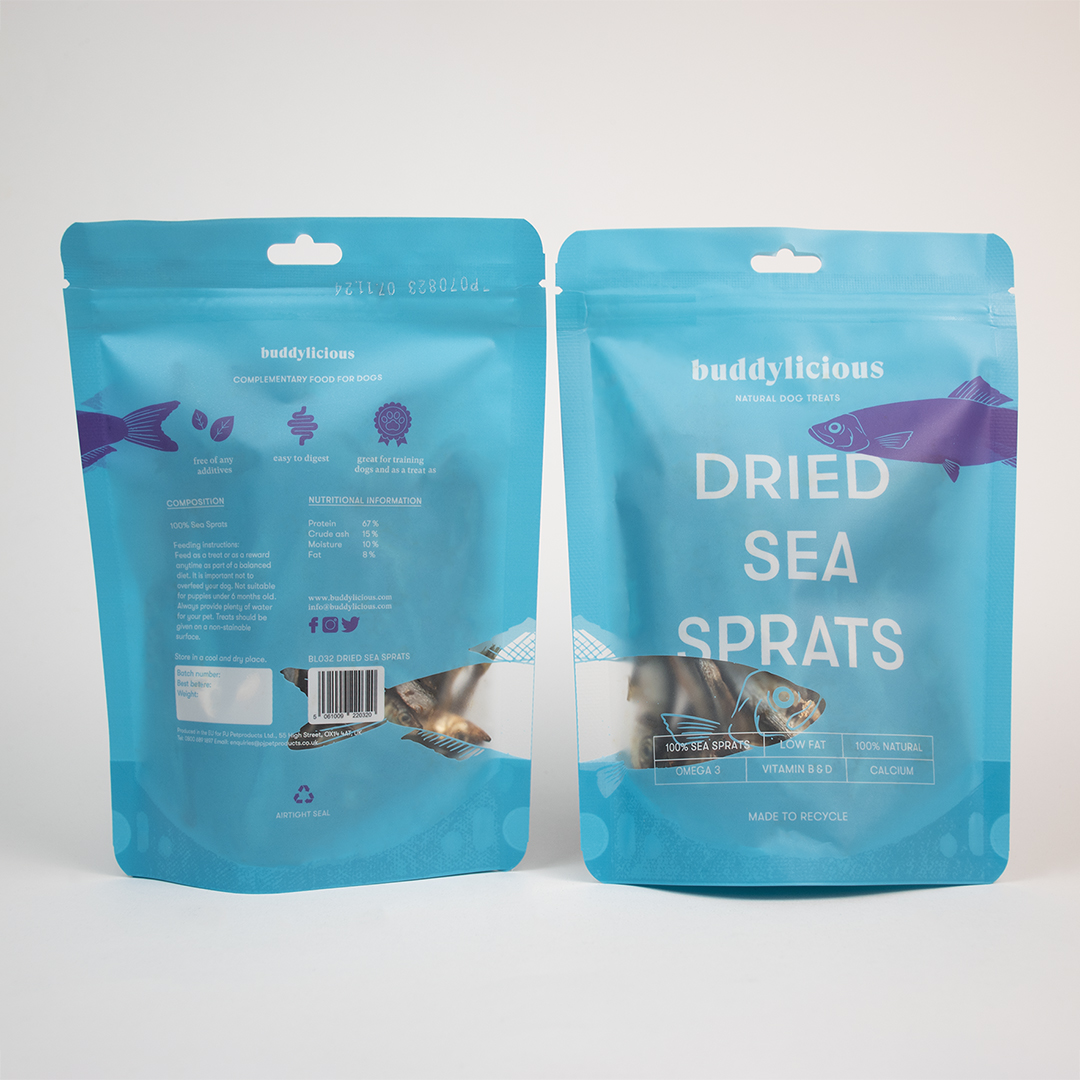 Our Dried Sea Sprats are made from 100% natural sprats, air-dried to retain their nutritional value. Low in fat and high in vitamin B and D, omega 3, and calcium, these treats are a healthy and delicious snack for your furry friend. Give them the purest form of sea sprats with our Dried Sea Sprats.