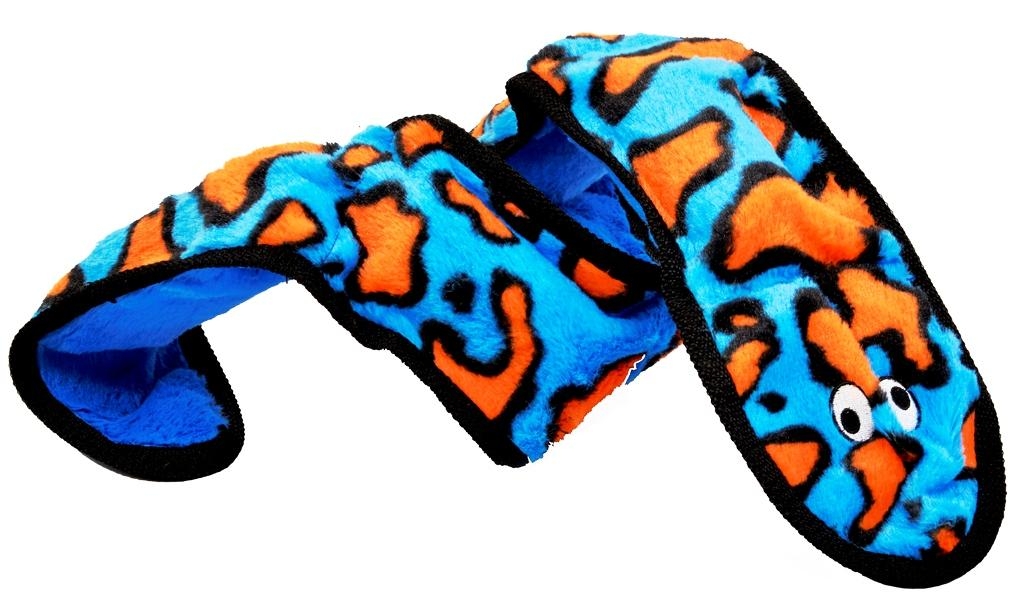 Your furry friend has lots of new challenges with the K9 Pursuits IMMORTALS tough and loveable plush toys! This is the slippery 5 Squeak Snake which is super cute and made from two layers of super-tough fabric in vibrant orange and cool blue with tough black edging. This adorable dog toy has 5 special ‘long life’ squeakers that continues to squeak even after being punctured and has been triple stitched on all edges for strength and extra toughness. And here’s the really cool bit…there’s no interior stuffing, so no mess! The IMMORTALS 5 Squeak Snake is just perfect to keep your faithful friend playing and entertained for longer! Plus it floats on water too so makes for a great outdoors/water dog toy too!