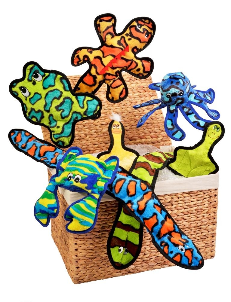 Your furry friend has lots of new challenges with the K9 Pursuits IMMORTALS tough and loveable plush toys! This is the Mini Frog which is super cute and made from two layers of super-tough fabric in a beautiful lime green colour with black edging. This adorable dog toy has a special ‘long life’ squeaker that continues to squeak even after being punctured and has been triple stitched on all edges for strength and extra toughness. The IMMORTALS Mini Frog is just perfect to keep your faithful friend playing and entertained for longer! And here’s the really cool bit…there’s no interior stuffing on some of the range, so no mess! They float on water too so make for a great outdoors dog toy too!