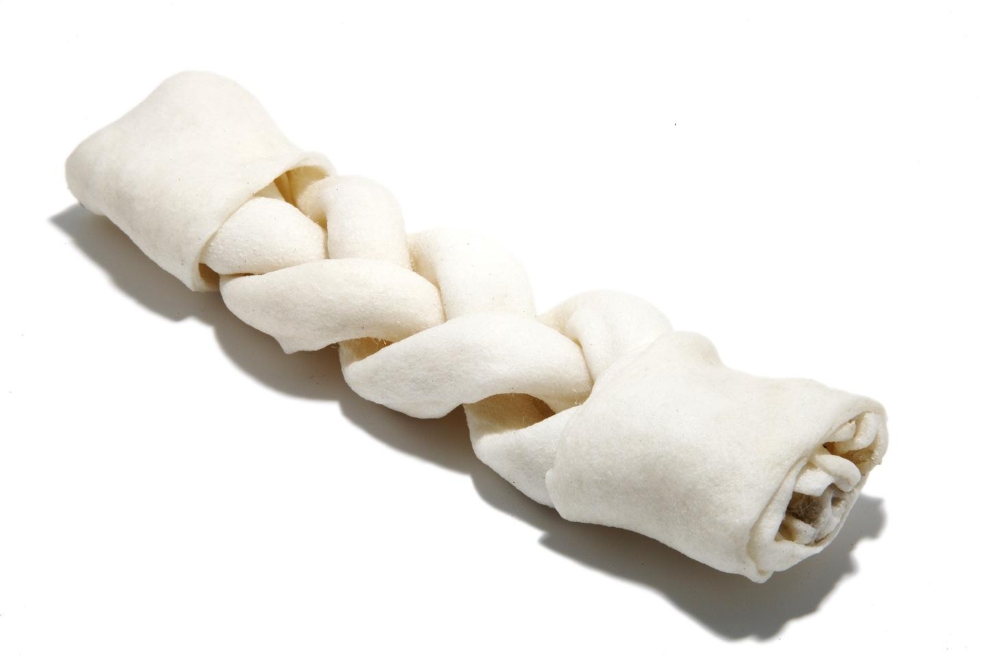 Our naturally white 8 inch Braided Bone is partnered with our PJ125 Rawhide Braided Ring.  The Rawhide Braided Bone is one of the largest chews in our range. This product is at the top end of our product lines, packed individually and is a great luxury treat for medium and larger sized dogs.  As well as being fun for dogs, chewing on rawhide bones can help dog in a number of ways –