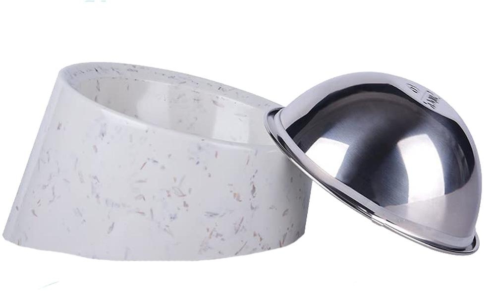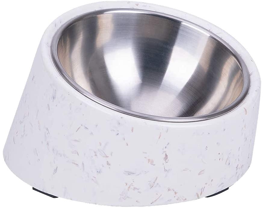 The Super Design 15 Degree Tilted Bowl is designed to help reduce neck pressure and/or joint pain whilst eating or drinking and also encourages a healthy digestive system by elevating and tilting your pets food or water. The base, fitted with an integral rubber ring preventing movement on the floor, is made from Melamine and houses the stainless steel bowl. The stainless steel bowl has a rubber seal on the underside of the outer rim to keep the bowl in place once seated in the base. The 15 degree tilt on the bowl helps the food to stay at the bottom of bowl whilst the high arc rim to the back prevents the content being pushed out over the top or spilled over. Practical and stylish, both the Melamine base and the stainless steel bowl are dishwasher safe. Available in 6 colours & 2 patterns. 3 sizes, Small – Medium – Large. Plus Extra Large in this pattern Straw for which the Base is 20cm Dia x 27.5cm Depth x 28.5cm Height and the Stainless Steel Bowl is 20cm Dia x 9.5cm Depth.