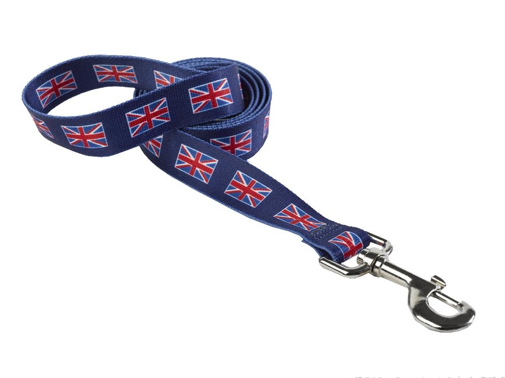 For Man, Dog and Country! A most brilliant Navy blue background with the flag flying proudly in the foreground. Made in the USA from colourfast polyester, this lead is finished off with a silver-look snap-hook fastening that’s easy to attach to the D-ring on the collar of your choice. Practical and patriotic, this is a ‘mutt-have’ accessory. Why not complete the look with a matching collar?